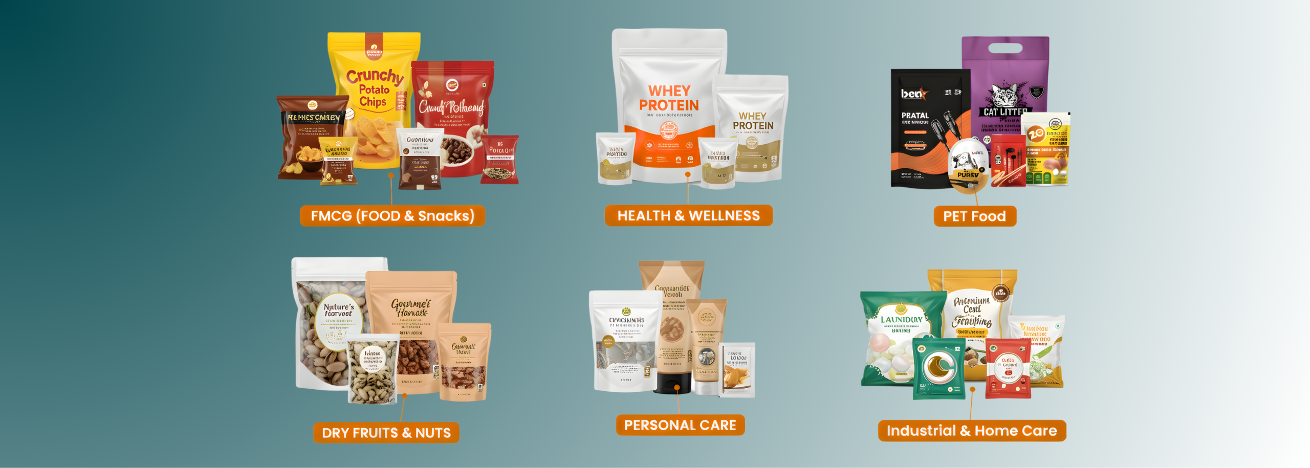 With years of expertise in the packaging industry, we understand that packaging is more than just protection β itβs presentation, identity, and impact. Thatβs why we offer an extensive range of options, including stand-up pouches, zipper pouches, center seal pouches, roll forms, laminated films, and spout pouches, crafted with precision and creativity.