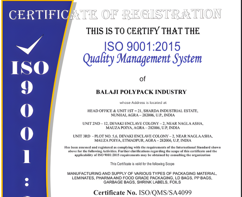 We are an ISO 9001:2015 certified company, ensuring consistent quality and international standards in every product.